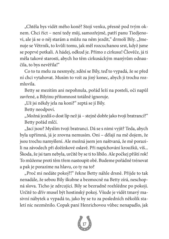 Dvanáctiletá Bily prožívá nejšťastnější okamžiky. Ve stájích se stará o milované koně a díky svému věrnému kamarádovi, poníku Větrníkovi, se může vyhoupnout do sedla, kdykoli se jí zachce. Ale i když už Bily konečně ví, jaké to je uhánět s větrem o závod na koňském hřbetě, její nejtajnější přání se jí přeci jen stále nesplnilo. Ráda by, aby vrtošivý poník, kterého zachránila z cirkusu, patřil jen jí...