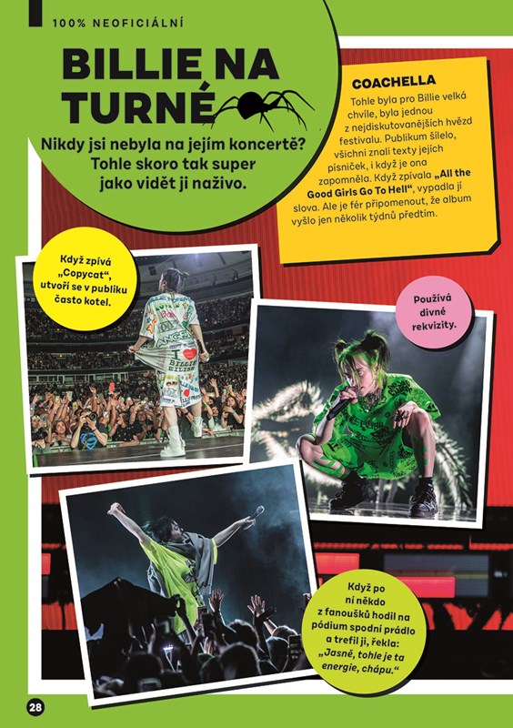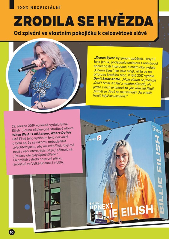 Billie Eilish niení jen současný popový fenomén, ale hlavně hlas mladé generace. Láme světové rekordy, vybočuje ze zaběhnutých kolejí a mění nejen hudební scénu a módu od základů. Objev všechno, co o ní prostě musíš vědět, a zjisti,j ak se vyvíjel její styl, co si myslí o slávě a s čím se musela v životě vyrovnat. Kde jinde než v ultimátním průvodci světem nejznámější teenagerky na planetě?