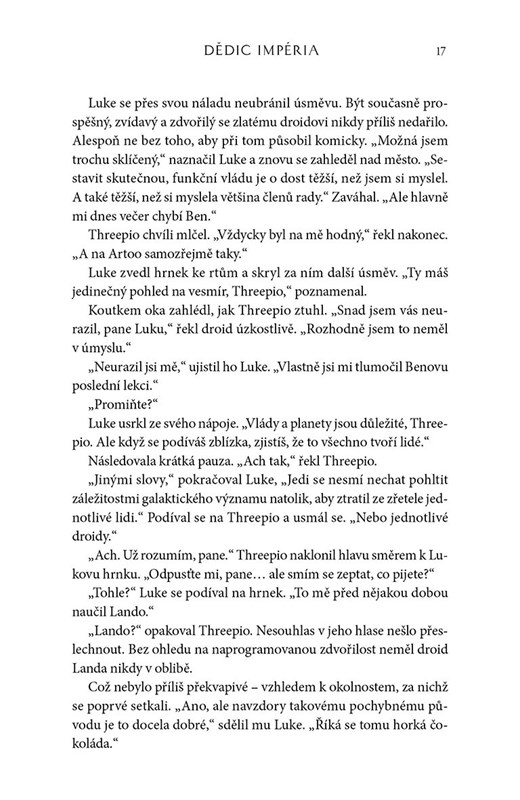 Od událostĂ popsanĂ˝ch v šestĂ© epizodÄ› Star Wars uplynulo pÄ›t let Aliance zniÄŤila novou HvÄ›zdu smrti a porazila Dartha Vadera a cĂsaĹ™e. Avšak tisĂce svÄ›telnĂ˝ch let daleko se velenĂ nad zbytky imperiálnĂ flotily ujĂmá poslednĂ z cĂsaĹ™ovĂ˝ch nejvyššĂch velitelĹŻ velkoadmirál Thrawn, kterĂ˝ je dokáže stmelit a pĹ™ipravit k válce vedenĂ© pĹ™Ămo proti kĹ™ehkĂ©mu srdci NovĂ© republiky. StrhujĂcĂ pĹ™ĂbÄ›h plnĂ˝ akce, dobrodruĹľstvĂ a mystickĂ©ho tajemstvĂ plnĂ˝m právem patřà do zlatĂ©ho fondu románĹŻ Star Wars.
