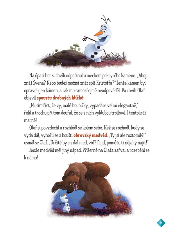 Olaf si v knihovně vypůjčil knihu s tajuplným názvem Hygge. Copak to znamená? Kamarádi to vědí, je to pohoda a pocit štěstí. Jeden po druhém pak ostatním sdělují, kdy takovou radost zažívají. Ve druhé části pak na vás čeká šest milých příběhů, které si kamarádi vypravují večer u krbu. Většina z nich je o tajuplných a bájných stvořeních, které najdete jen v Ledovém království!