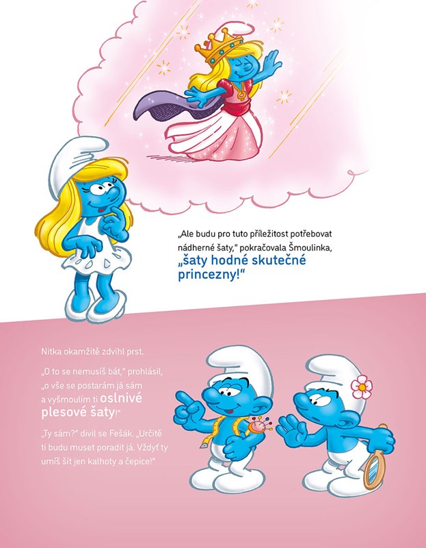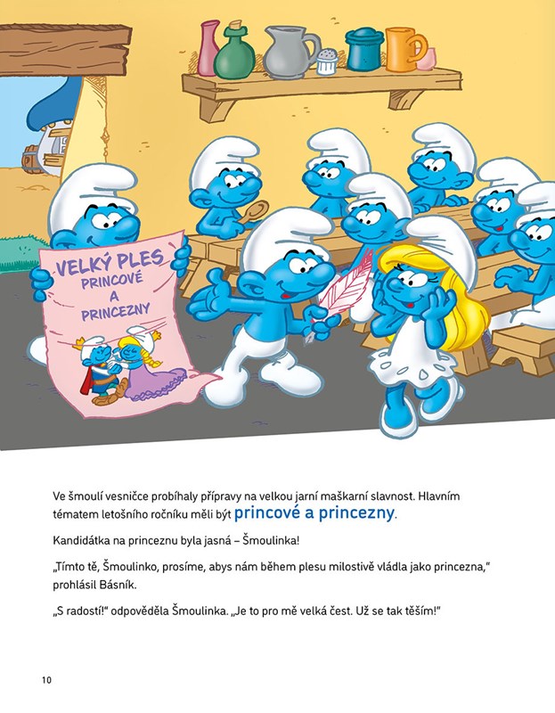 Pojďte s námi na úžasný výlet do světa Šmoulů! Společně pomůžeme Šmoulince vybrat krásné šaty na šmoulí ples, poznáme Silákova největšího soupeře a taky zjistíme, s čím se potýká Kýchal a s kým se nečekaně spřátelil Fešák. Samozřejmě nemůže chybět ani lstivý Gargamel s kocourem Azraelem. To vše třeba chvilku před spaním! Prostě pět minut čtení, které vás dostane do šmoulovaté nálady!