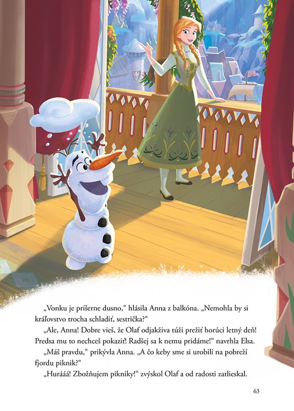 Vydajte sa na ľadovo zábavnú rozprávkovú výpravu! Obľúbení hrdinovia kráľovstva Arendelle sa už na vás tešia. Dozviete sa, ako si snehuliak Olaf našiel nového kamaráta, oslávite čarovný letný slnovrat, spoločne s Annou a Kristoffom budete strážiť trollie bábätká, prežijete krásny letný deň s Olafom a pre Annu a Elsu objavíte takmer zabudnuté vianočné zvyky. Ľadové kráľovstvo plné zázračných miest a bytostí vás pozýva na úžasné dobrodružstvo, ktoré vás zahreje pri srdci. Tak si ho užite do poslednej snehovej vločky!