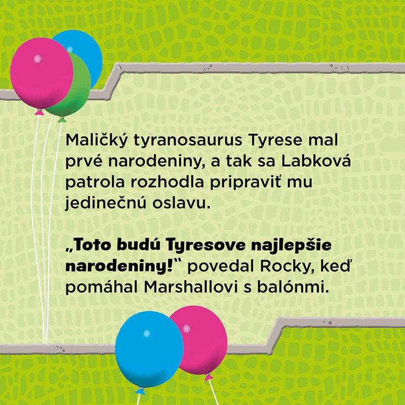 Labky pripravujú skvelú narodeninovú oslavu pre malého tyranosaura Tyresa, ale keď ho vystraší prasknutý balónik, ihneď utečie! Pridajte sa k Labkovej patrole a ich neohrozenej záchrane a pomôžte im vystopovať Tyresa v džungli. Podarí sa našim hrdinom nájsť ho čo najskôr, aby nezmeškal oslavu svojich prvých narodenín?