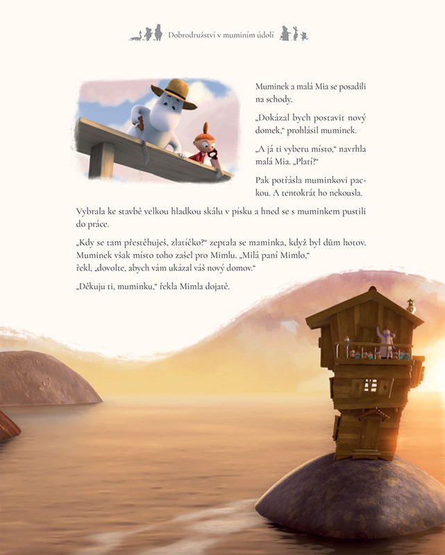 V nádherném muminím údolí se odehrávají ta nejúžasnější dobrodružství. Muminek se svou rodinou a kamarády Šňupálkem, malou Miou, slečnou Ferkou a Čenichem se v nich setkávají s hatifnaty, chytí dráčka, nečekaně se stěhují do nového domu, seznámí se s divadlem a potkají tajemnou Moranu.