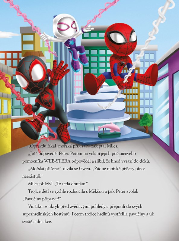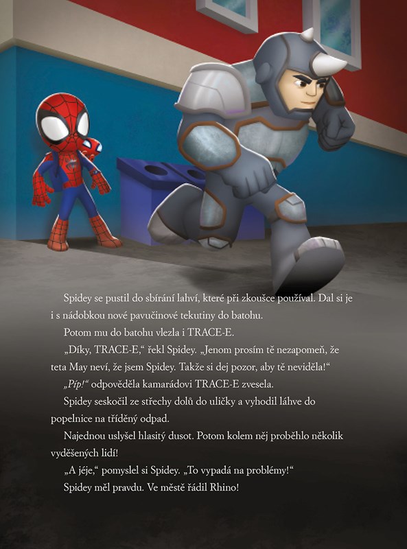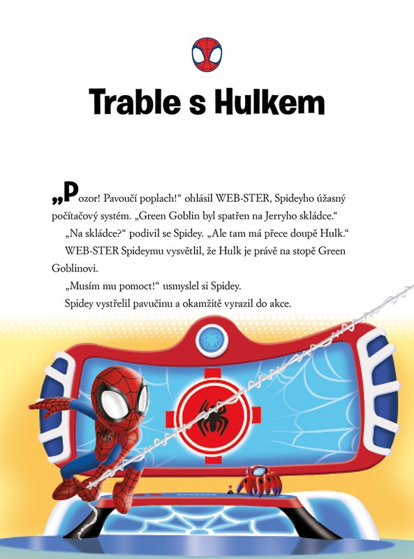 Tým Spidey vyráží do akce! Přidejte se k oblíbeným pavoučím superhrdinům s výjimečnými schopnostmi a pomozte jim chytit všechny zloduchy! Oblíbení hrdinové musí ochránit město před lstivým Green Goblinem i vychytralou doktorkou Ock, čeká je pátrání po mořské příšeře pod hladinou oceánu a najdou si nového spojence, který jim bude při boji se zločinem krýt záda. Vypravte se se Spideym za novým úžasným dobrodružstvím ve dvanácti napínavých příbězích, které stihnete přečíst za pět minut.