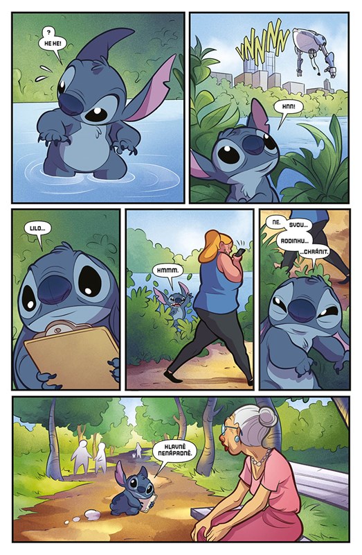 Když Stitche unesou nebezpeční roboti, holčička Lilo se vydává po jejich stopách, aby ho zachránila. Netuší ale, že se mu podařilo uniknout a udělá vše pro to, aby ochránil svou novou rodinu, i kdyby to mělo znamenat, že uteče na konec světa! Objevujte s roztomilým rošťákem Stitchem podivuhodné velkoměsto, prozkoumejte neznámý kontinent nebo si s vynalézavým mimozemšťanem vyzkoušejte život v přestrojení či pobyt divočině. Velké komiksové dobrodružství začíná!